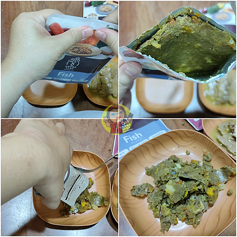 我這次沒有加熱,直接拆封倒盤給妞妞試,她先是慢慢嗅才慢慢吃起來