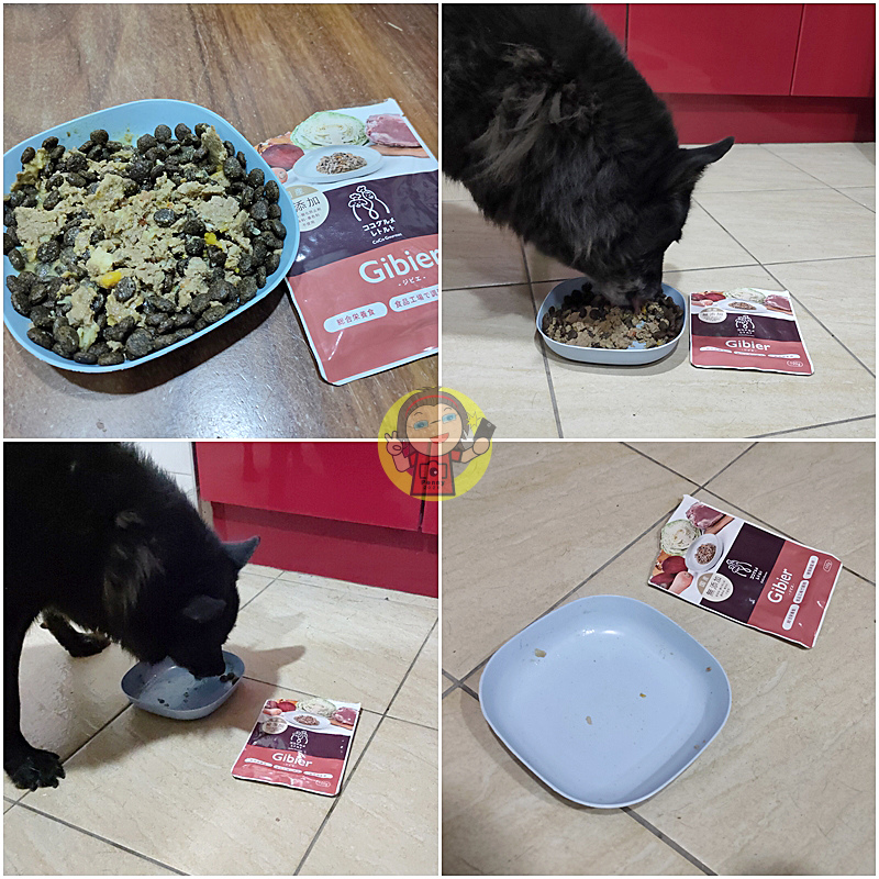 這次我將即食鮮食餐包跟牠不愛的一款乾糧拌在一起,沒想到牠居然願意吃,還吃光光了,完全沒有剩